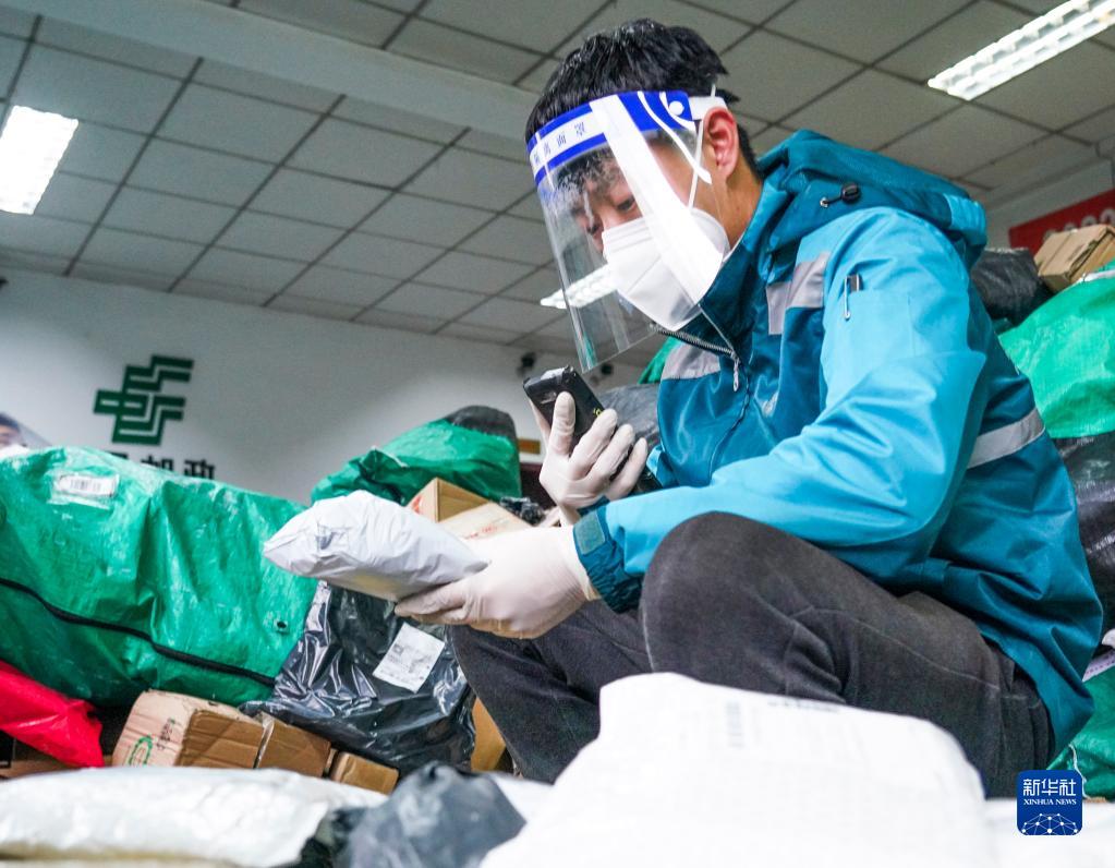11月11日,中國郵政速遞物流股份有限公司唐山市分公司開(kāi)平營(yíng)業(yè)部的工作人員在分揀快遞。