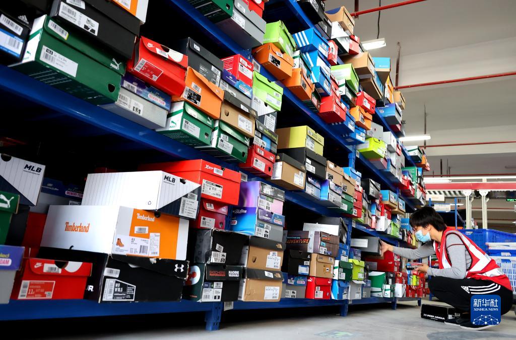 11月11日,工人在江蘇省連云港市海州區天馬電商產(chǎn)業(yè)園按照訂單查找貨品。
