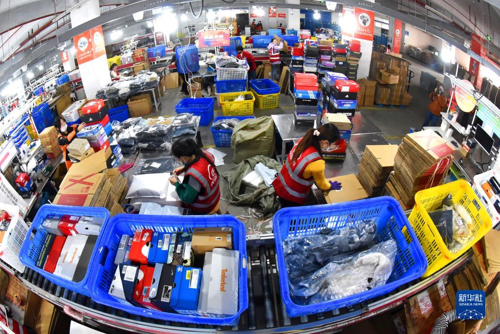 11月11日,工人在江蘇省連云港市海州區天馬電商產(chǎn)業(yè)園按照訂單分揀貨品。