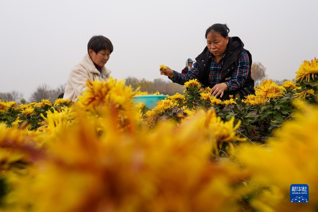 11月11日,農戶(hù)在前道口村采摘金絲皇菊。