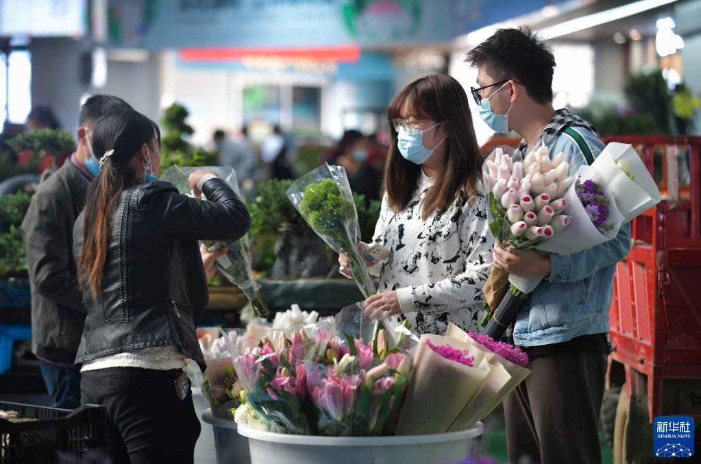 11月11日,顧客在昆明斗南花市選購鮮花。