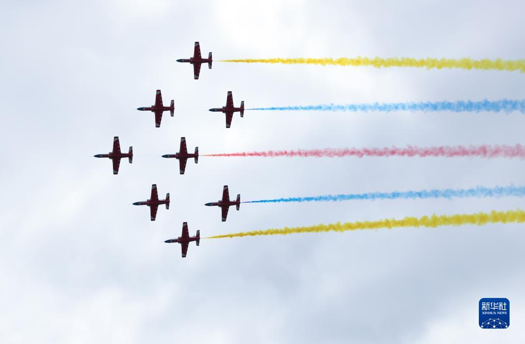 11月11日,空軍航空大學(xué)“紅鷹”飛行表演隊在第十四屆中國航展上進(jìn)行飛行表演。