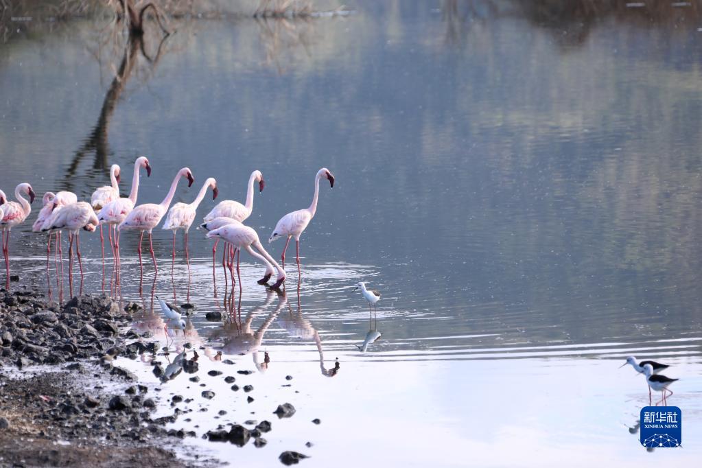 這是11月6日在肯尼亞博戈里亞湖拍攝的火烈鳥(niǎo)。