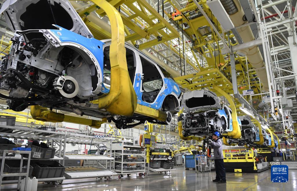 11月12日,工人在安慶一家汽車(chē)企業(yè)生產(chǎn)線(xiàn)上工作。