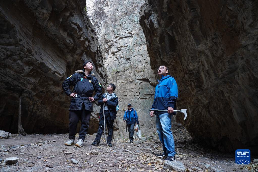 趙明騰(右一)和同事們在深山中(11月9日攝)。