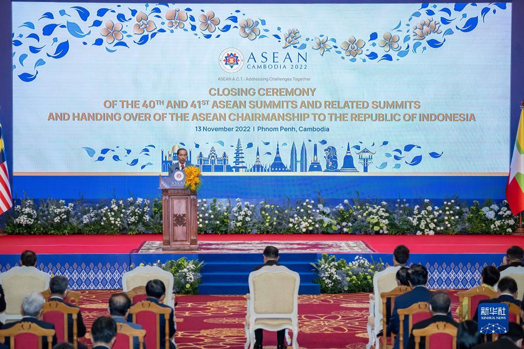 11月13日,印度尼西亞總統佐科在柬埔寨首都金邊舉行的閉幕式上致辭。