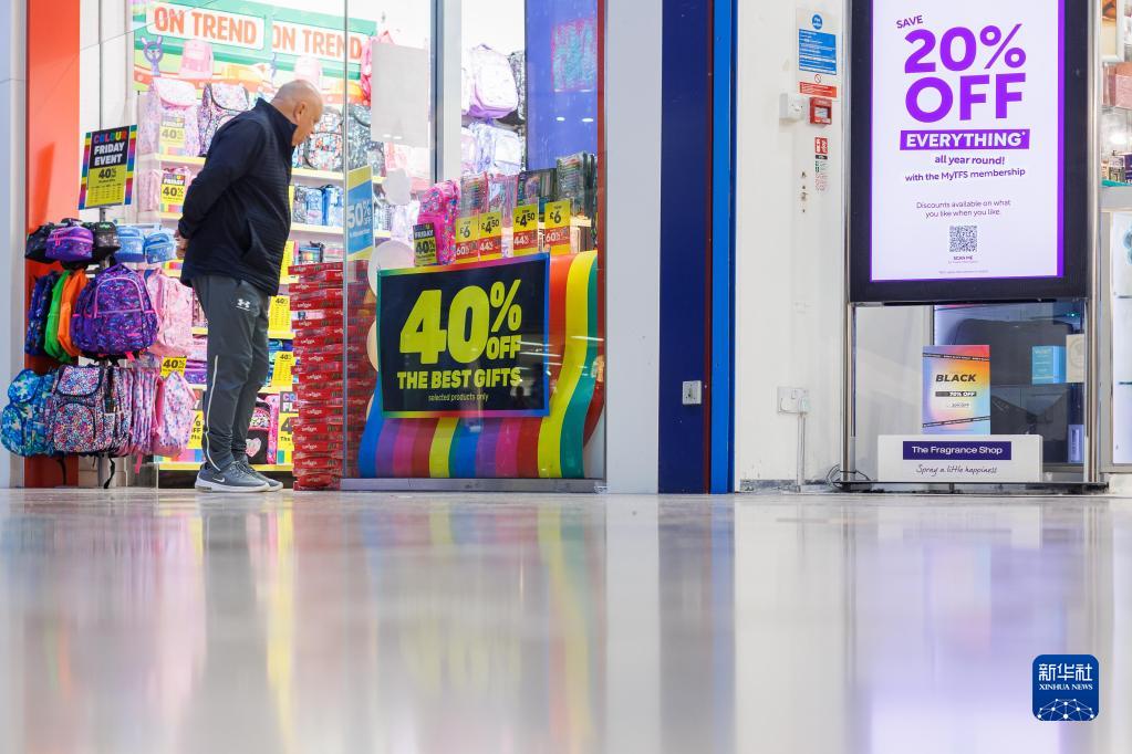 11月13日,一名男子站在英國貝辛斯托克一家打折店鋪門(mén)口。