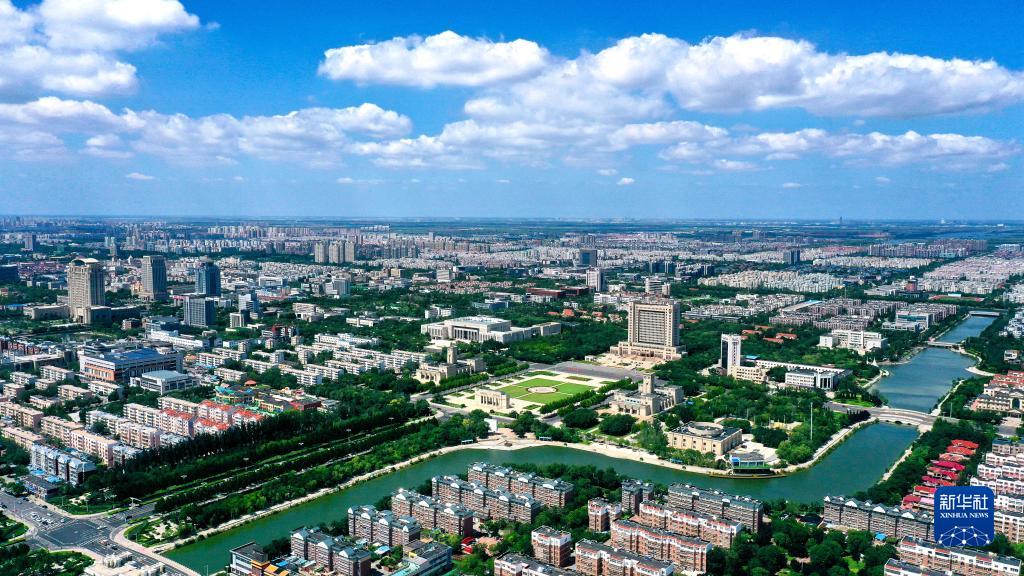 東營(yíng)市城市景色一角(2020年8月21日攝,無(wú)人機照片)。