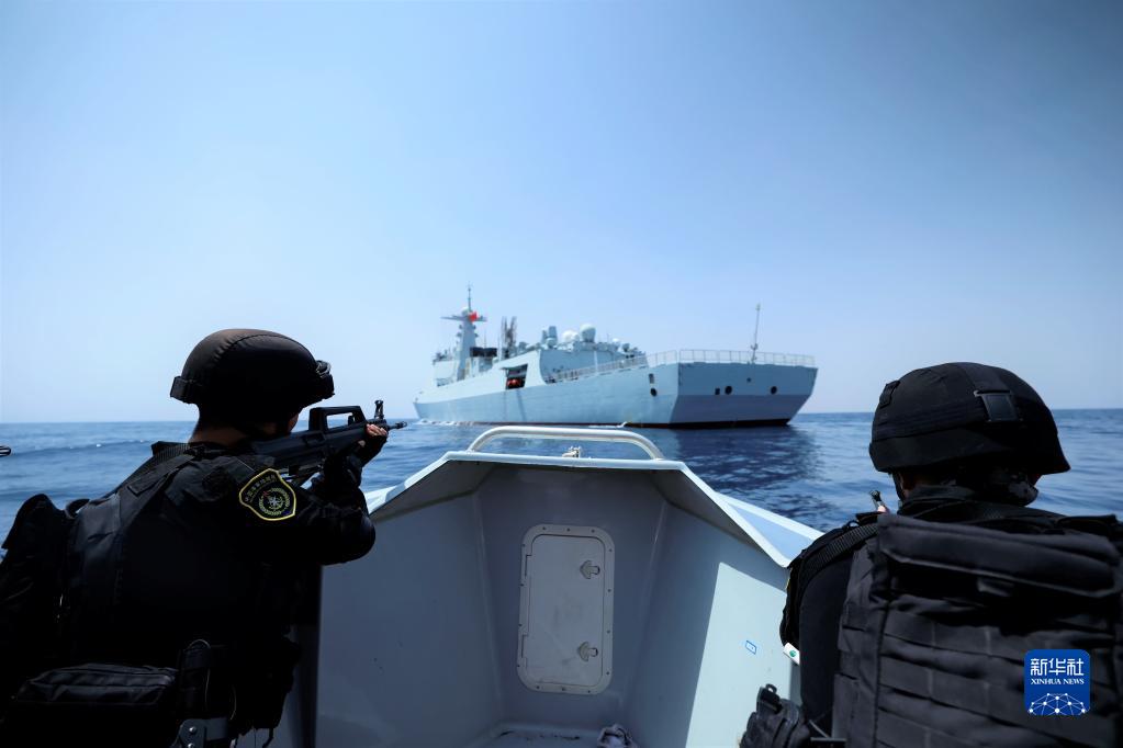 中國海軍第41批護航編隊組織實(shí)戰化訓練,陸戰隊員搭乘小艇前出(8月22日攝)。
