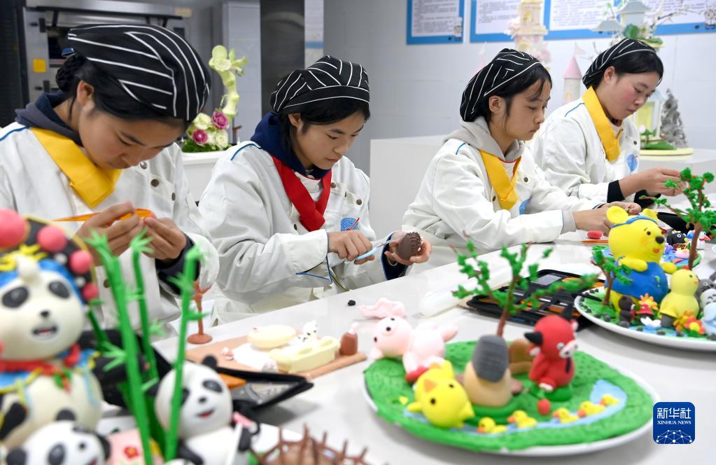 藍田廚師學(xué)校的學(xué)生在制作面塑(11月15日攝)。
