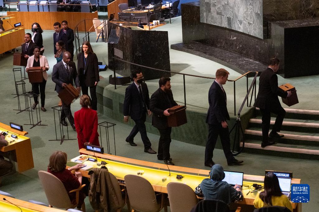 這是11月15日在紐約聯(lián)合國總部拍攝的聯(lián)合國上訴法庭和爭議法庭法官選舉現場(chǎng)。