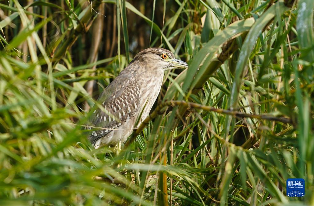 夜鷺在沙家浜國家濕地公園蘆葦叢中棲息(11月15日攝)。 新華社記者 季春鵬 攝