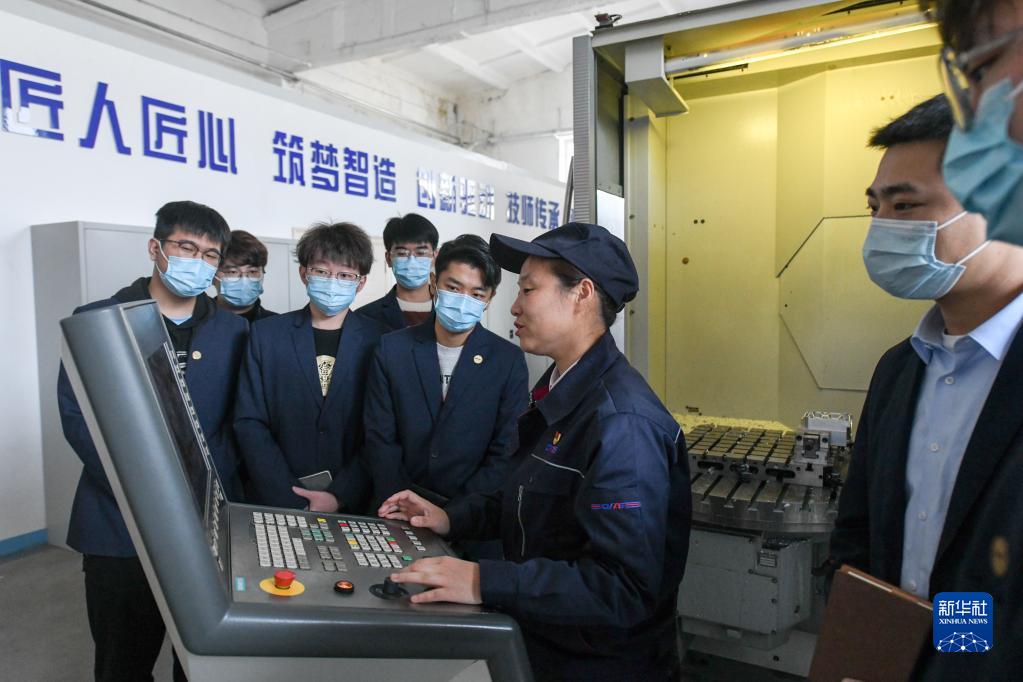 在哈爾濱東安汽車(chē)動(dòng)力股份有限公司增程動(dòng)力系統研究院加工中心,苗秀為企業(yè)技術(shù)工人代表講解新品樣件試制技術(shù)規程(11月15日攝)。