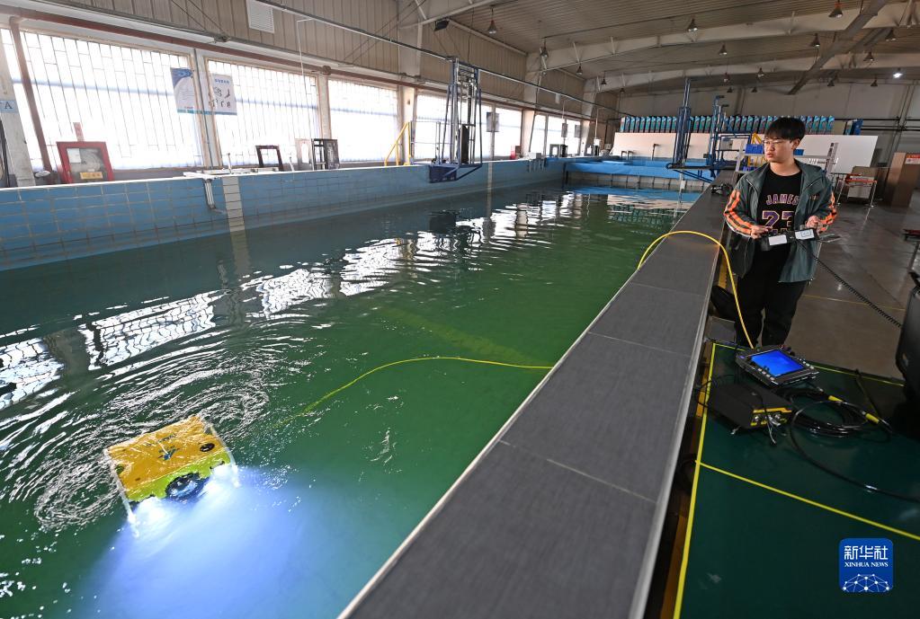 11月16日,在位于天津市濱海新區的深之藍海洋科技股份有限公司,工作人員測試水下機器人產(chǎn)品。
