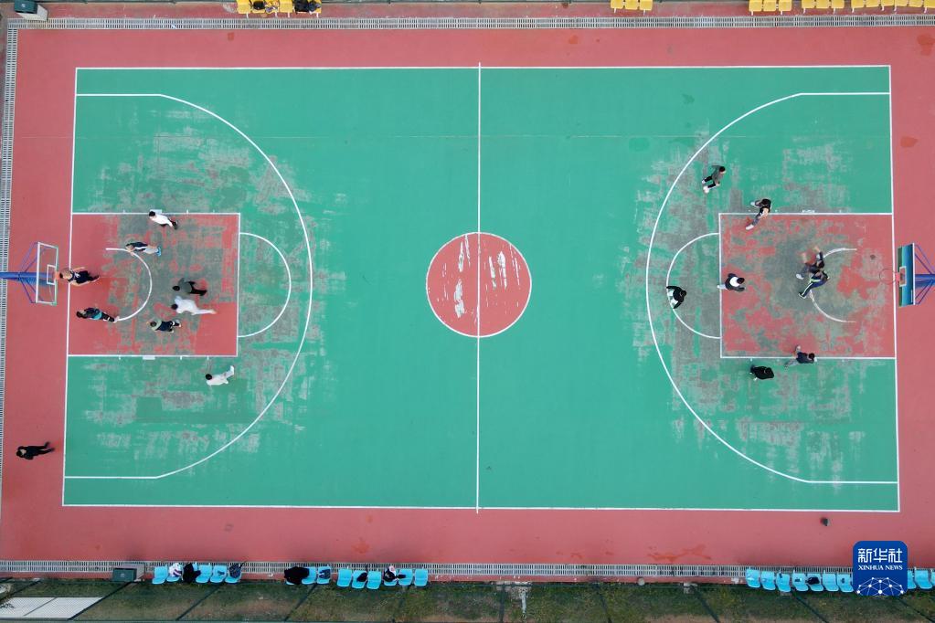 11月15日,市民在銅陵市一處口袋公園內健身(無(wú)人機照片)。
