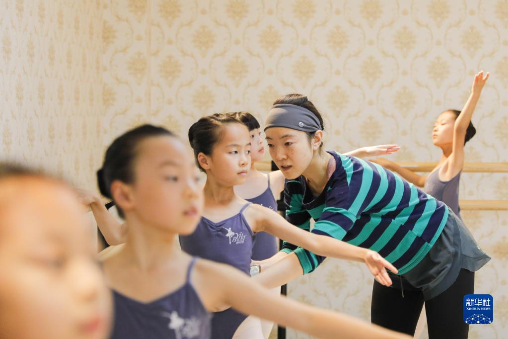 11月4日,在北京的舞蹈教室,趙蘊輝為學(xué)生指導動(dòng)作。 新華社記者 方欣 攝