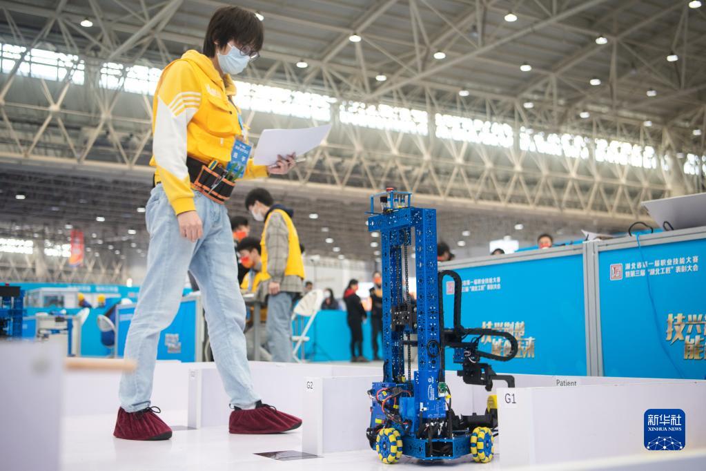 當日,湖北省第一屆職業(yè)技能大賽在武漢國際博覽中心舉行。來(lái)自90余家企業(yè)、院校的400余名選手同臺競技,參加3D數字游戲藝術(shù)、機電一體化、信息網(wǎng)絡(luò )布線(xiàn)、機器人系統集成等多項技能的比拼。