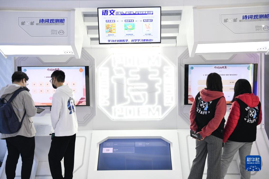 11月17日,觀(guān)眾在活動(dòng)現場(chǎng)體驗應用于教育方面的智能產(chǎn)品。