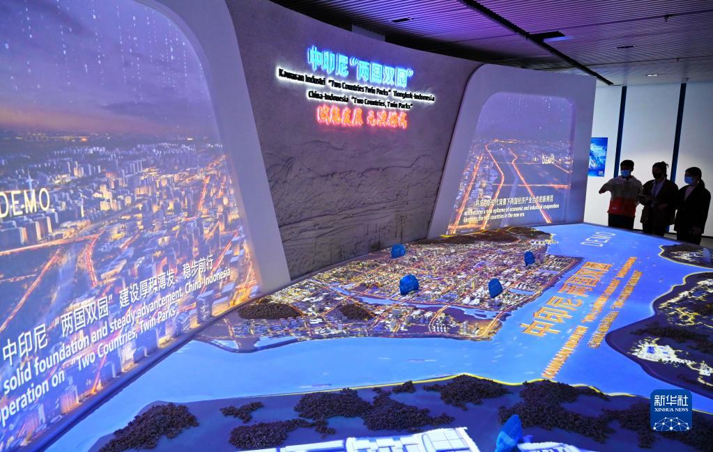 11月16日拍攝的福州元洪投資區元洪食品數字經(jīng)濟產(chǎn)業(yè)中心的中印尼“兩國雙園”沙盤(pán)和項目介紹。