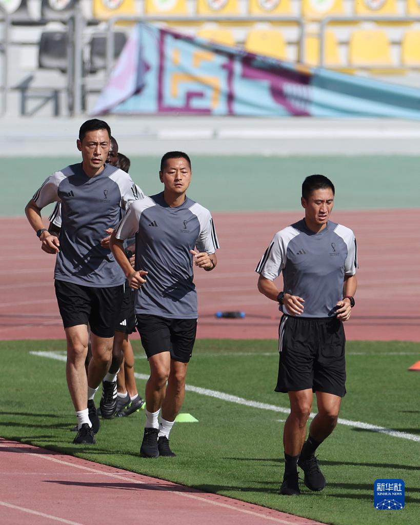 當日,入選2022年卡塔爾世界杯裁判員名單的中國裁判馬寧、曹奕與施翔在卡塔爾體育俱樂(lè )部球場(chǎng)進(jìn)行訓練。