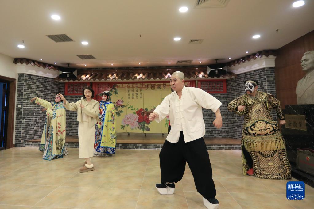 11月14日,沈陽(yáng)京劇院的老師們指導幾位留學(xué)生學(xué)習京劇《霸王別姬》。