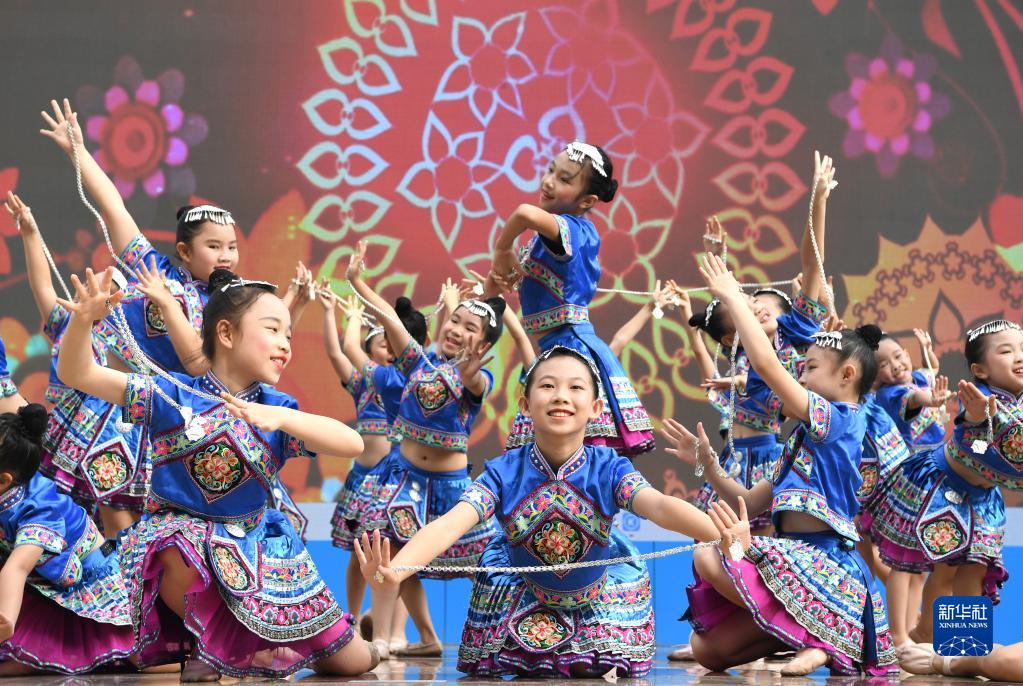 11月18日,孩子們在廣西南寧市濱湖路小學(xué)教育集團山語(yǔ)城校區表演舞蹈。