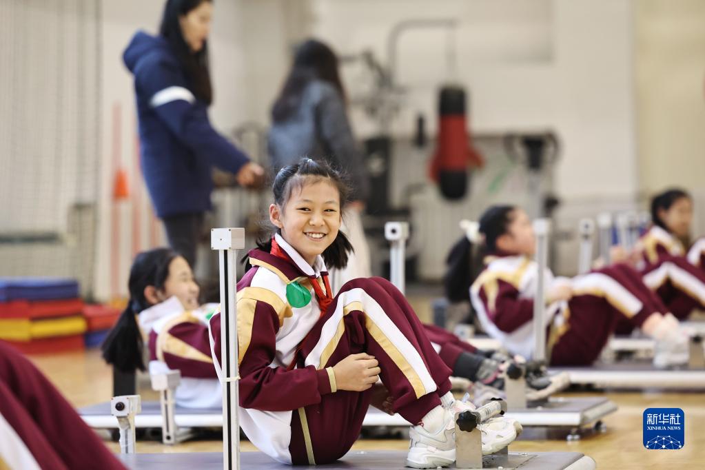 11月18日,天津市和平區萬(wàn)全小學(xué)學(xué)生在《國家學(xué)生體質(zhì)健康標準》測試中進(jìn)行仰臥起坐項目測試。