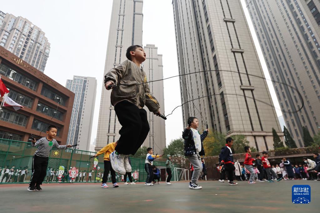 11月18日,天津市和平區萬(wàn)全小學(xué)學(xué)生在《國家學(xué)生體質(zhì)健康標準》測試中進(jìn)行一分鐘跳繩項目測試。