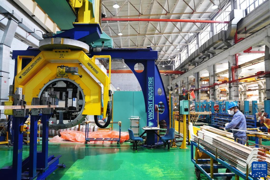 11月17日,在哈電集團哈爾濱電機廠(chǎng)有限責任公司的生產(chǎn)車(chē)間,工人在數控自動(dòng)彎形機旁作業(yè)。