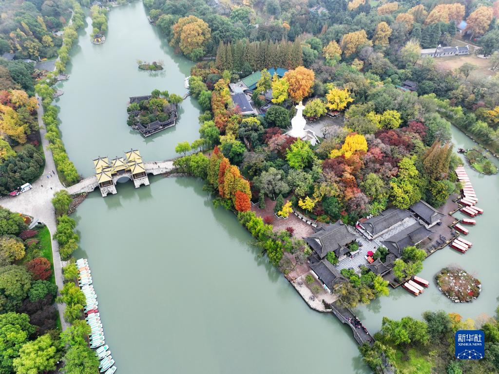 這是11月19日拍攝的江蘇揚州瘦西湖風(fēng)景區初冬景色(無(wú)人機照片)。