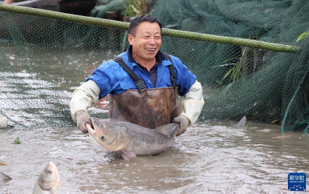 11月19日,下渚湖漁民展示捕獲的魚(yú)。