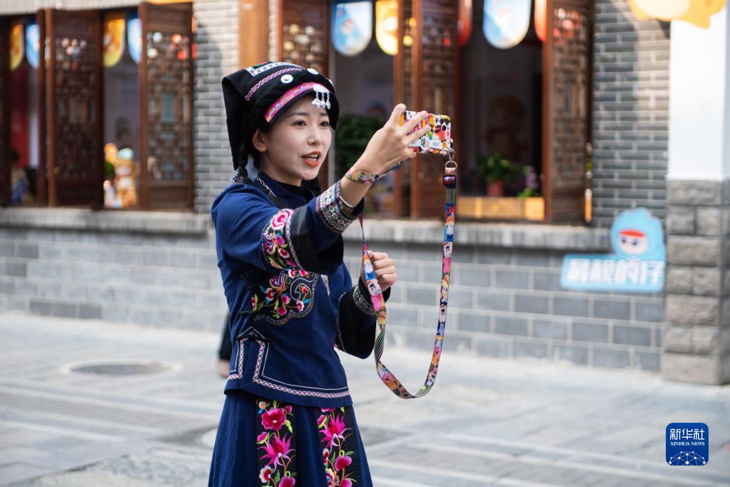11月19日,游客在張家界大庸古城湖南首屆非遺博覽會(huì )現場(chǎng)自拍。