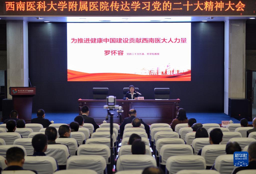 11月17日,羅懷容在西南醫科大學(xué)附屬醫院向醫務(wù)人員宣講二十大精神。