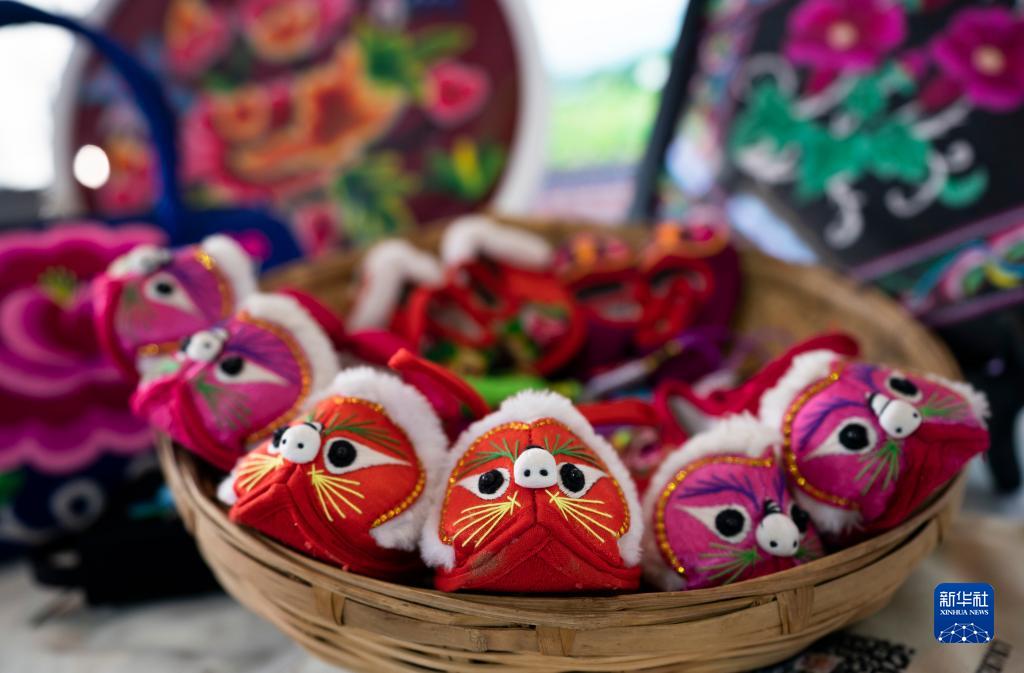 這是11月20日在南博會(huì )旅游文化館內拍攝的彝繡虎頭鞋。