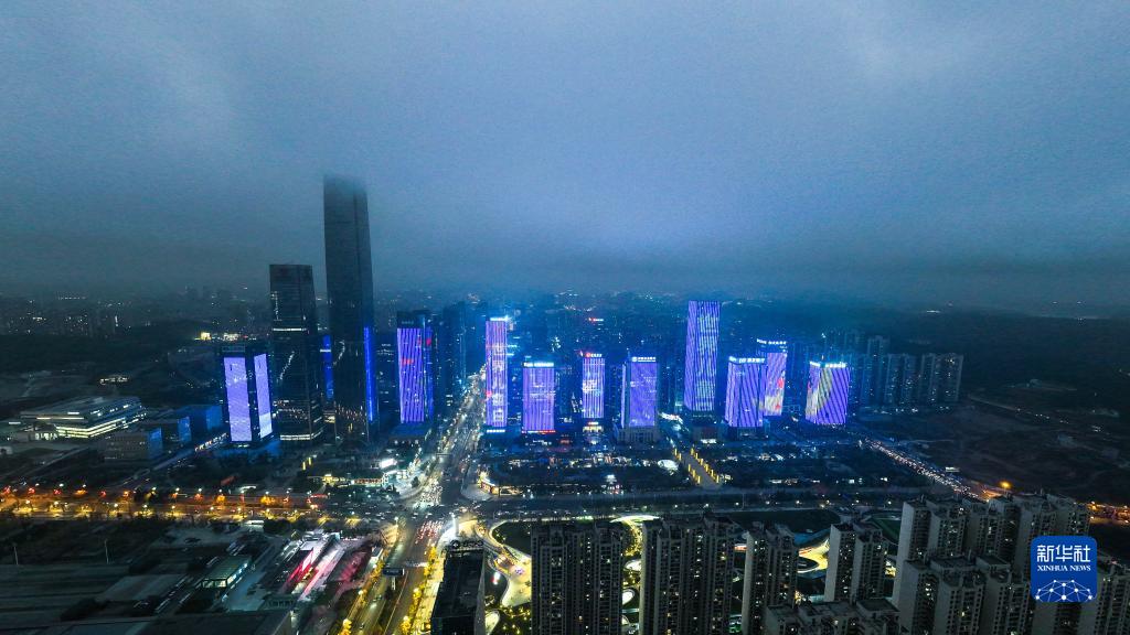 11月20日,貴陽(yáng)市觀(guān)山湖區部分建筑為世界兒童日亮燈(無(wú)人機照片)。