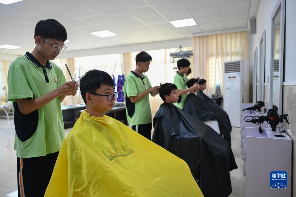 11月20日,聽(tīng)障學(xué)生在泉州市特殊教育學(xué)校聽(tīng)障職教大樓里上美容美發(fā)課。