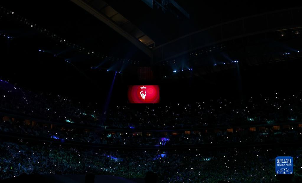 11月20日,開(kāi)幕式現場(chǎng)大屏幕上出現本屆世界杯吉祥物。