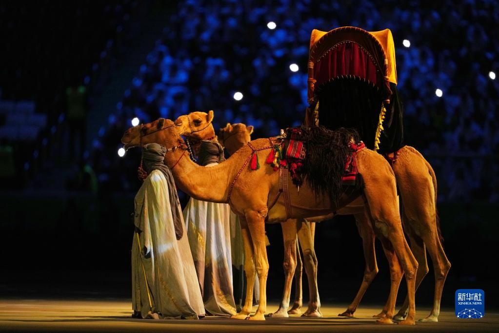 這是11月20日拍攝的開(kāi)幕式現場(chǎng)的駱駝。