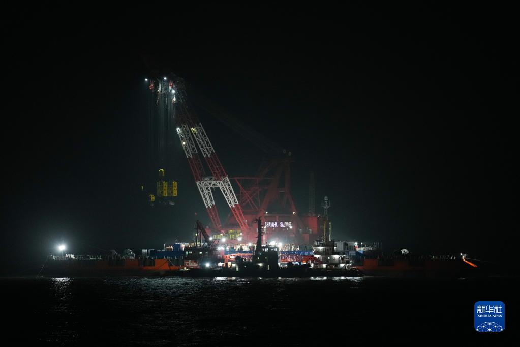 11月20日拍攝的長(cháng)江口二號古船整體打撈現場(chǎng)。