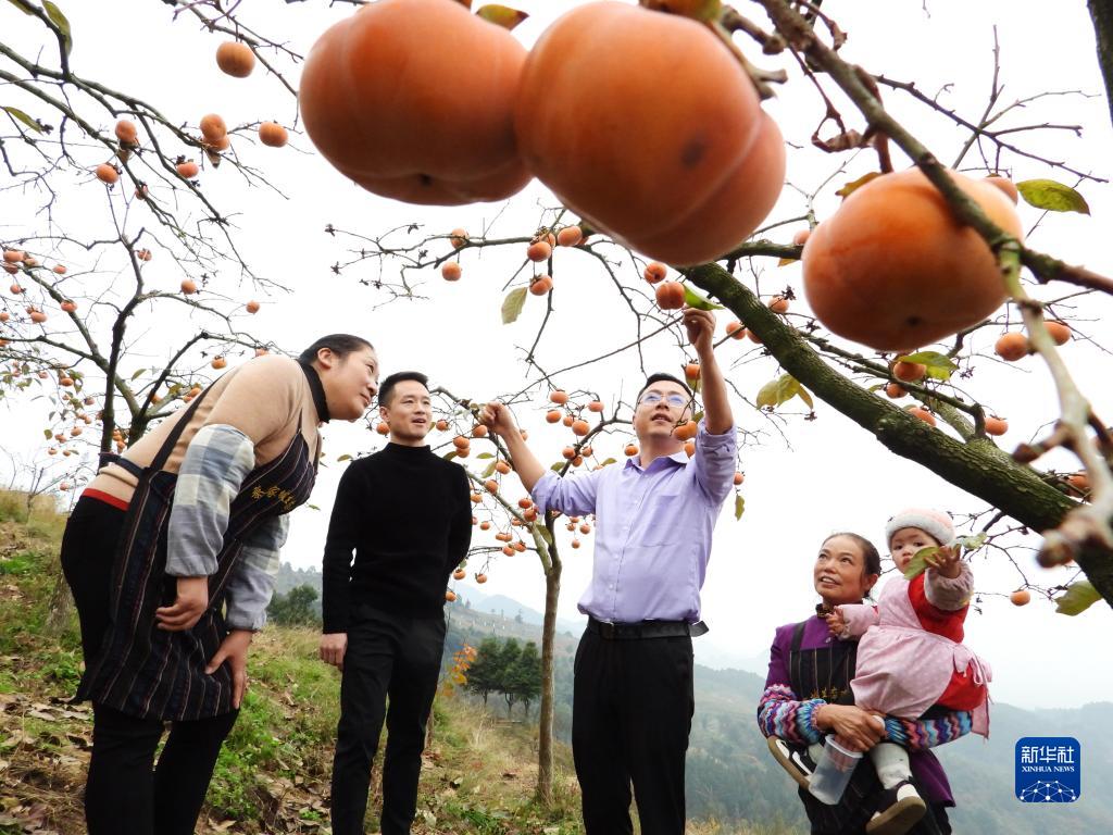 11月20日,在四川省達州萬(wàn)源市魏家鎮熊家壩村種植園內,來(lái)自浙江省舟山市普陀區的幫扶干部(左三)在給果農培訓陽(yáng)豐脆甜柿子種植技術(shù)。