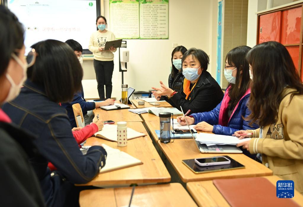 11月18日,在北京第二實(shí)驗小學(xué),蘆詠莉與教師們進(jìn)行教研交流。