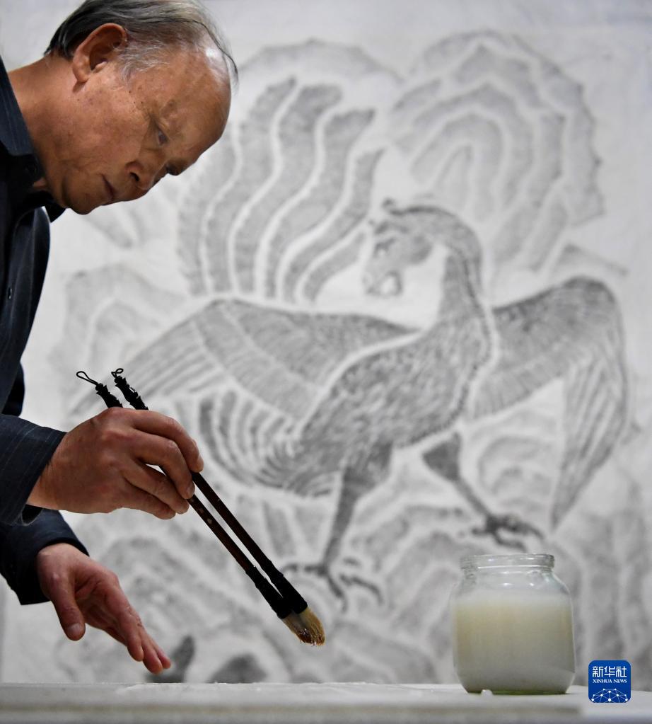 上紙、噴濕、剪紙、砸刷、晾干、撲墨、粘接、修復……一系列流程下來(lái),立體石雕磚上的雕像就纖毫畢現地展露在平面拓片之上,59歲的李仁清拿起拓片仔細地檢查著(zhù)每一處細節。