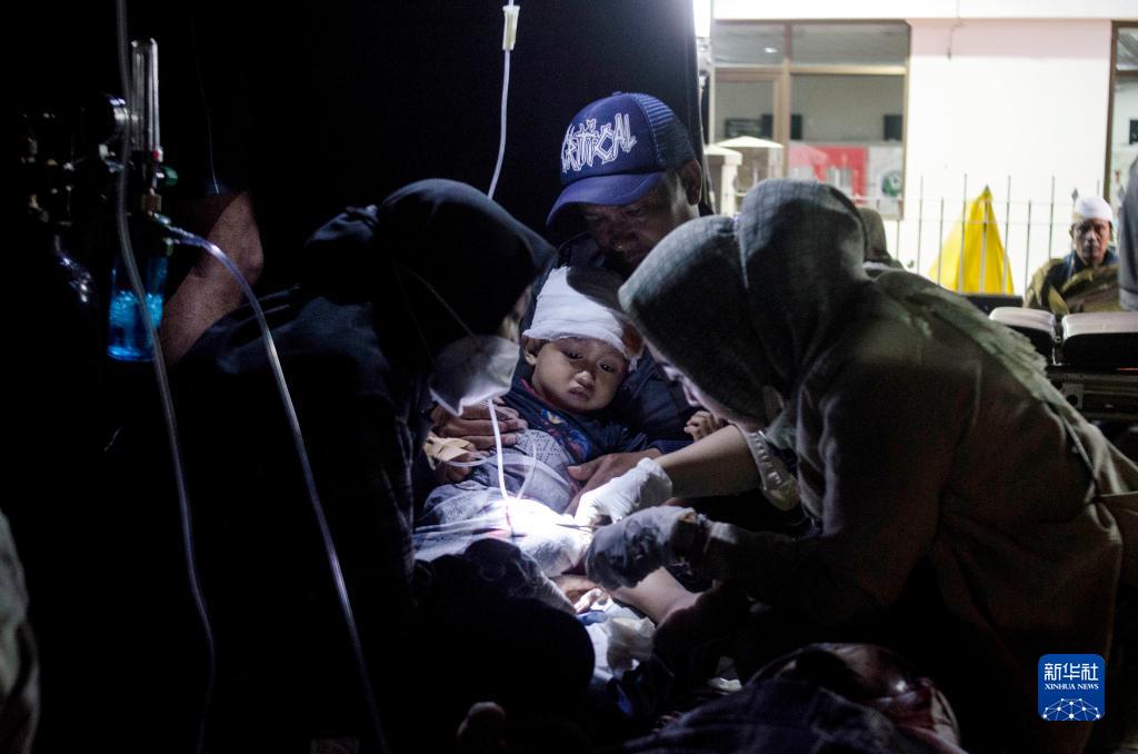 11月21日,醫務(wù)人員在印度尼西亞西爪哇省展玉救治傷者。