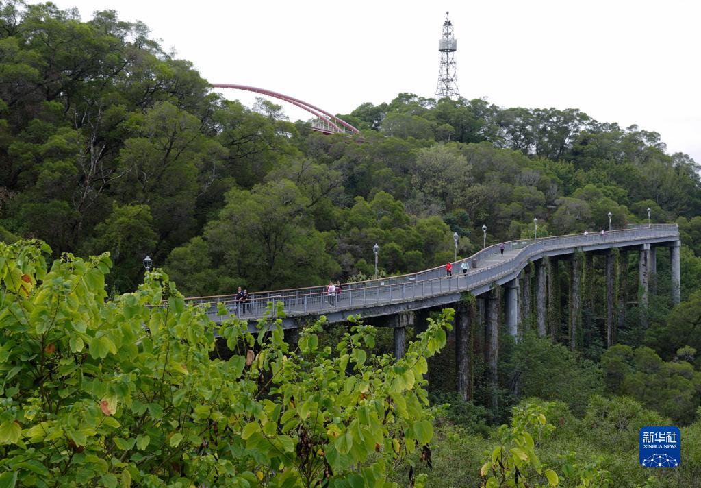 市民在福州金雞山公園攬城棧道上慢行(11月18日攝)。