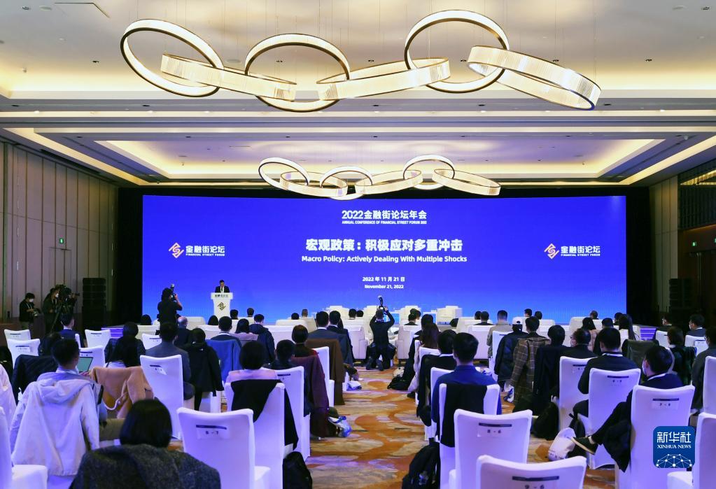 這是11月21日拍攝的2022金融街論壇年會(huì )中的“宏觀(guān)政策:積極應對多重沖擊”論壇現場(chǎng)。