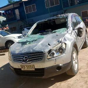 這是11月22日在所羅門(mén)群島首都霍尼亞拉拍攝的一輛受損的汽車(chē)。