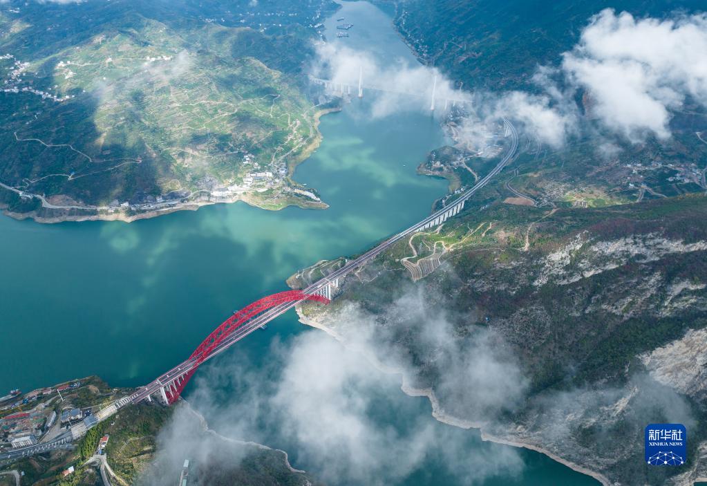 11月22日,船舶行駛在長(cháng)江三峽西陵峽秭歸縣水域(無(wú)人機照片)。