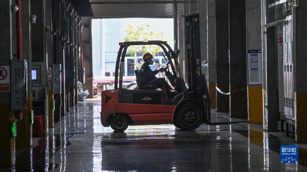 11月21日,在廣西中偉新能源科技有限公司生產(chǎn)車(chē)間,一名黨員突擊隊員在調運新能源材料。