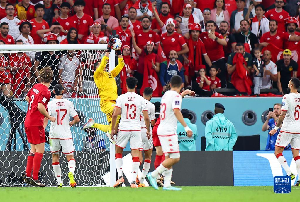 當日,在卡塔爾賴(lài)揚教育城球場(chǎng)進(jìn)行的2022卡塔爾世界杯足球賽D組比賽中,丹麥隊以0比0戰平突尼斯隊。