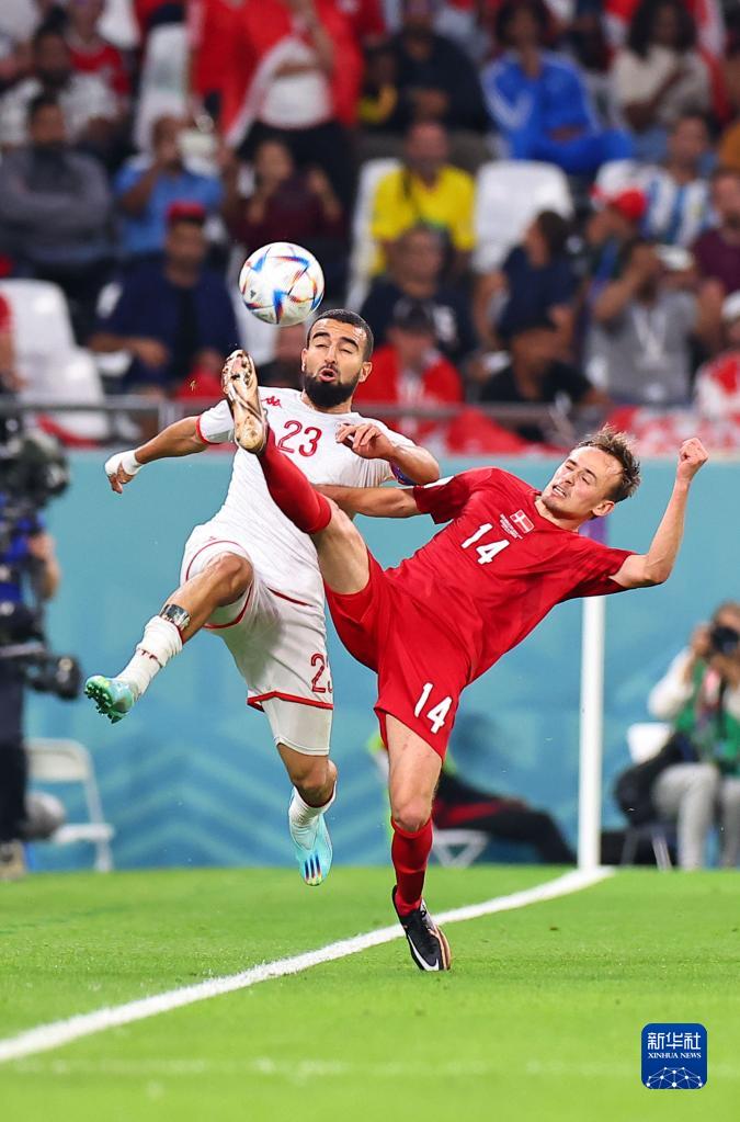 當日,在卡塔爾賴(lài)揚教育城球場(chǎng)進(jìn)行的2022卡塔爾世界杯足球賽D組比賽中,丹麥隊以0比0戰平突尼斯隊。